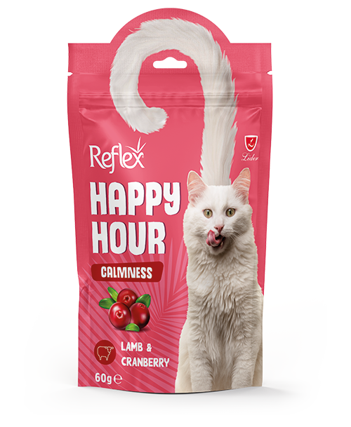 Reflex Happy Hour Calmness Kuzu Etli Ve Kızılcıklı Sakinleşmeyi Destekleyici Kedi Ödül Maması 60 Gr
