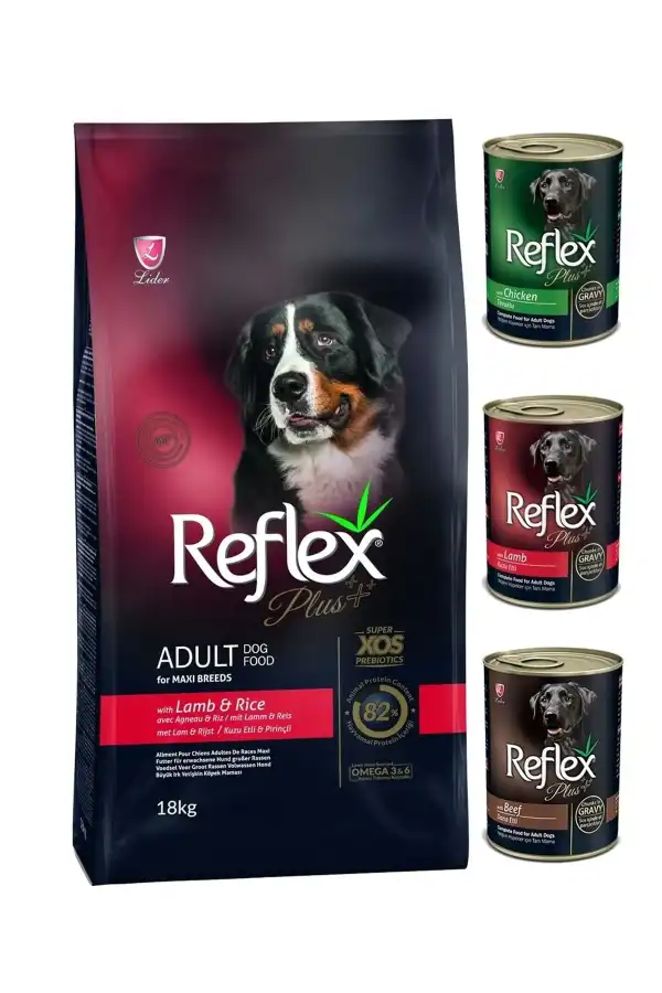 Reflex Plus Kuzu Etli Pirinçli Köpek Maması 18 kg Reflex Plus Karışık Köpek Konservesi (3 Adet)