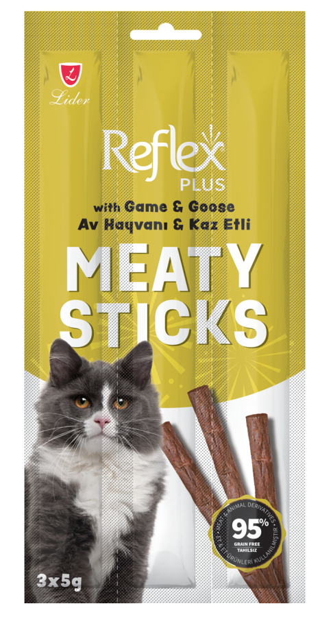 Reflex Plus Meaty Stick Av Hayvanı Ve Kaz Etli Kedi Ödül Çubukları 3x5 gr (10 Adet)