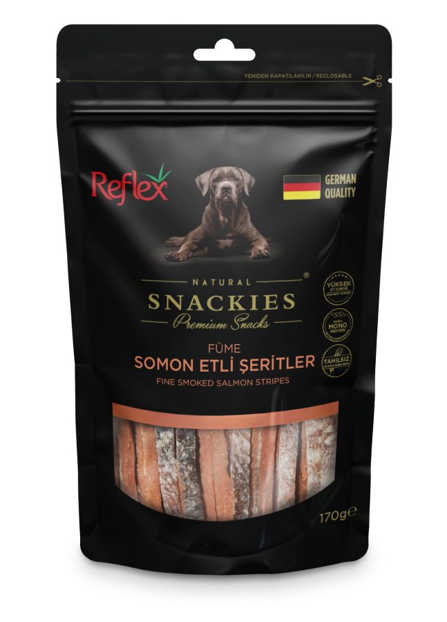 Reflex Snackies Füme Somon Etli Şerit Tahılsız Köpek Ödülü 170 Gr (16 Adet)